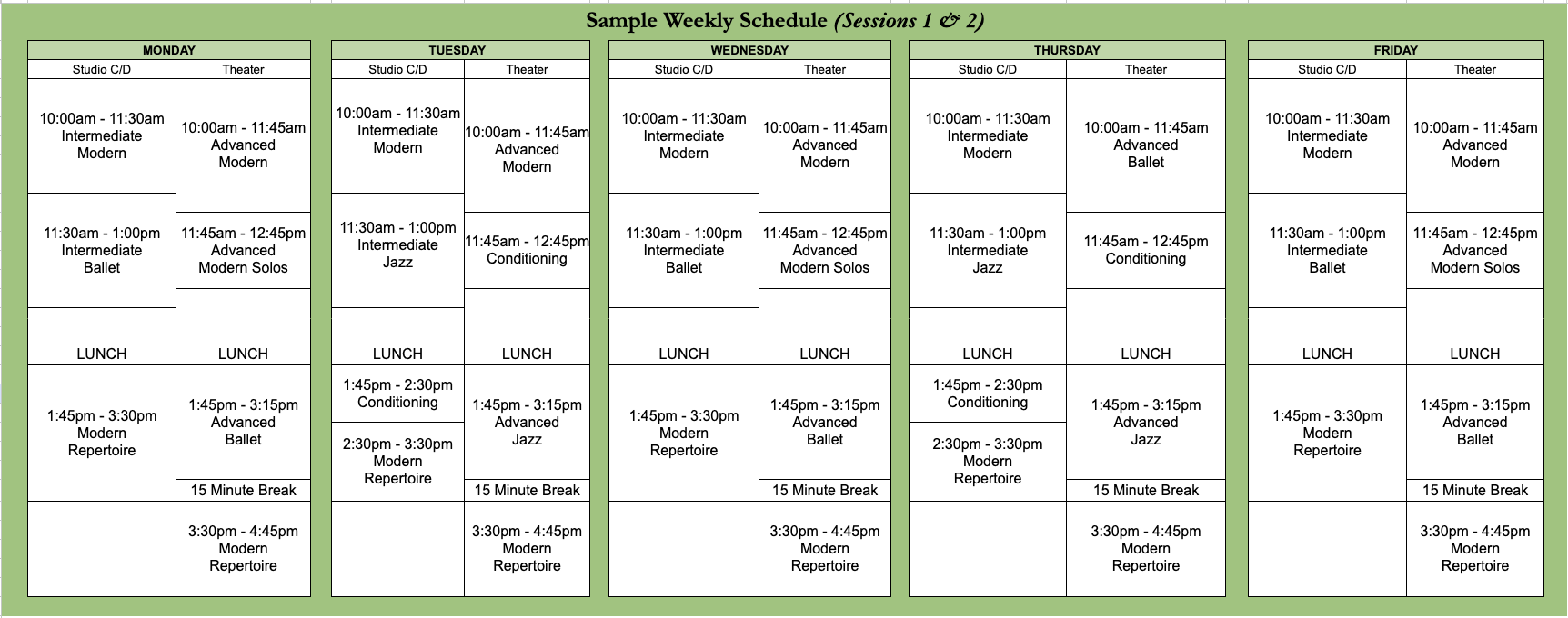 Program Placement: Students will be thoughtfully placed into one or more of the three sessions based on age, experience level, and artistic focus, ensuring each dancer receives training tailored to their developmental stage and goals.